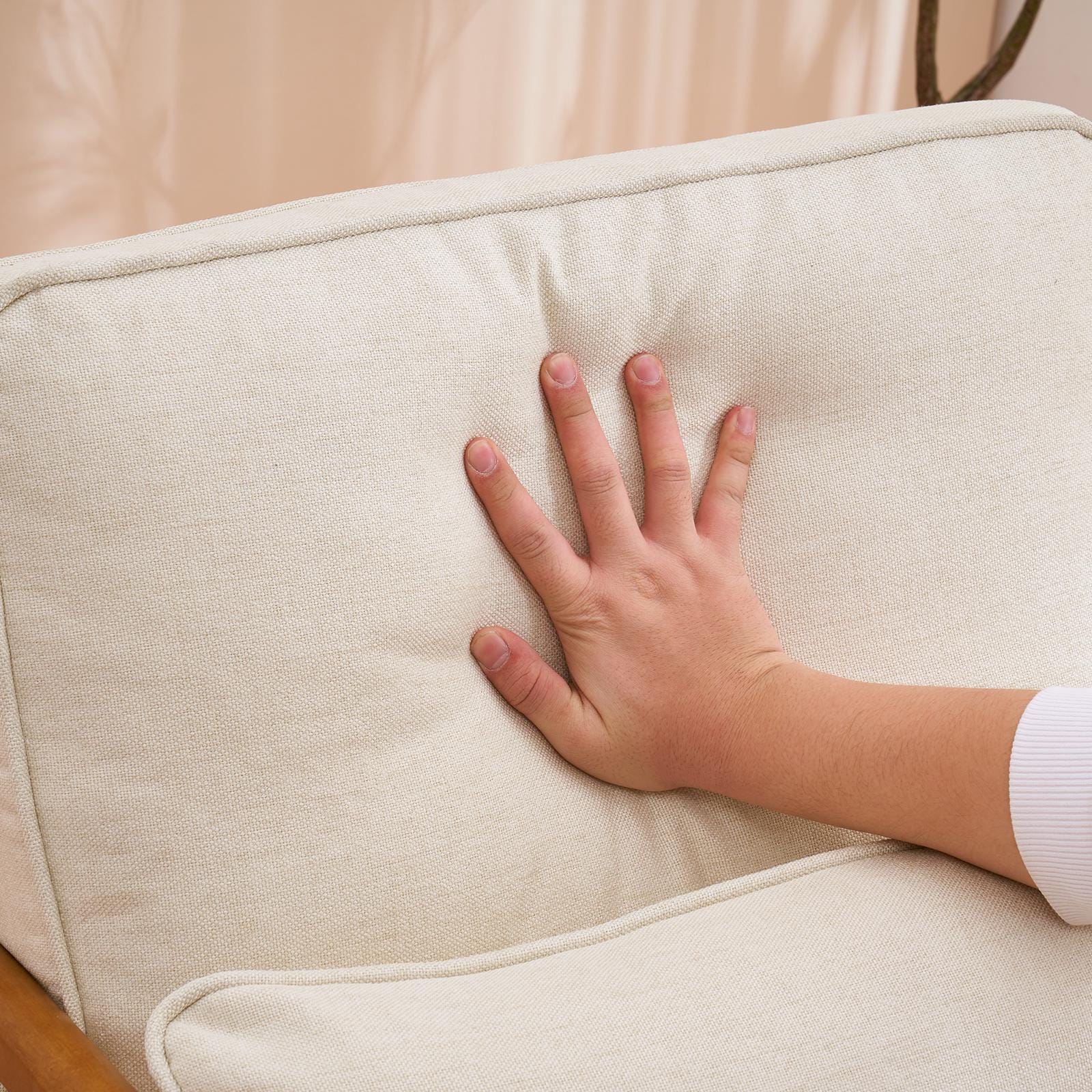 Material: Solid Wood Armrest, Linen Upholstery
