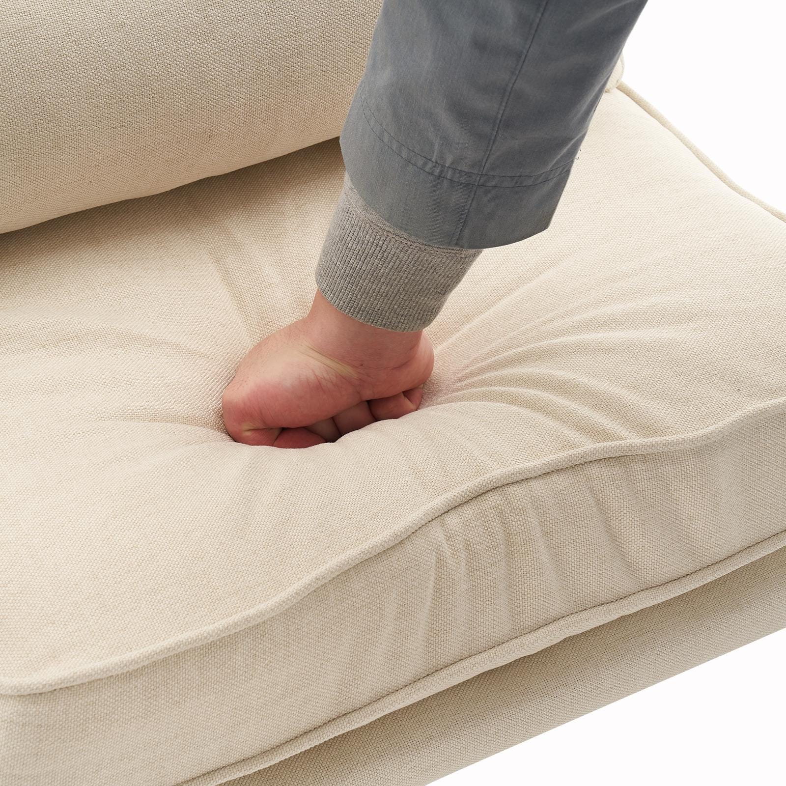 Material: Solid Wood Armrest, Linen Upholstery